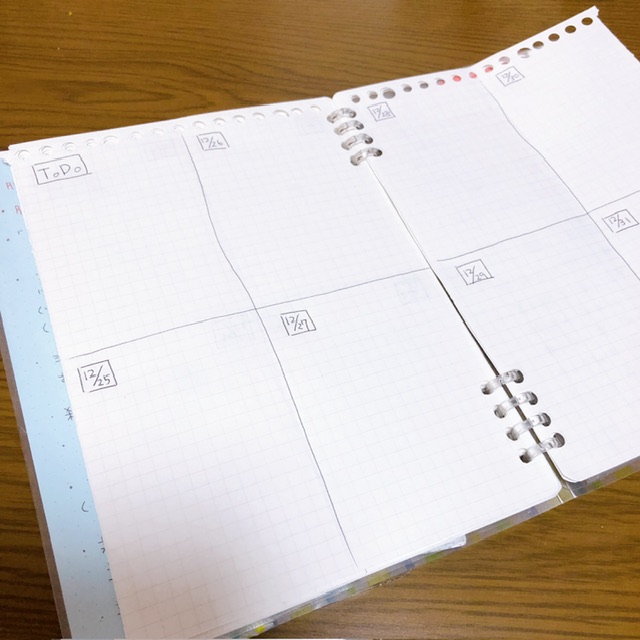 カレンダーはダイソーとキャンドゥのルーズリーフ用です。